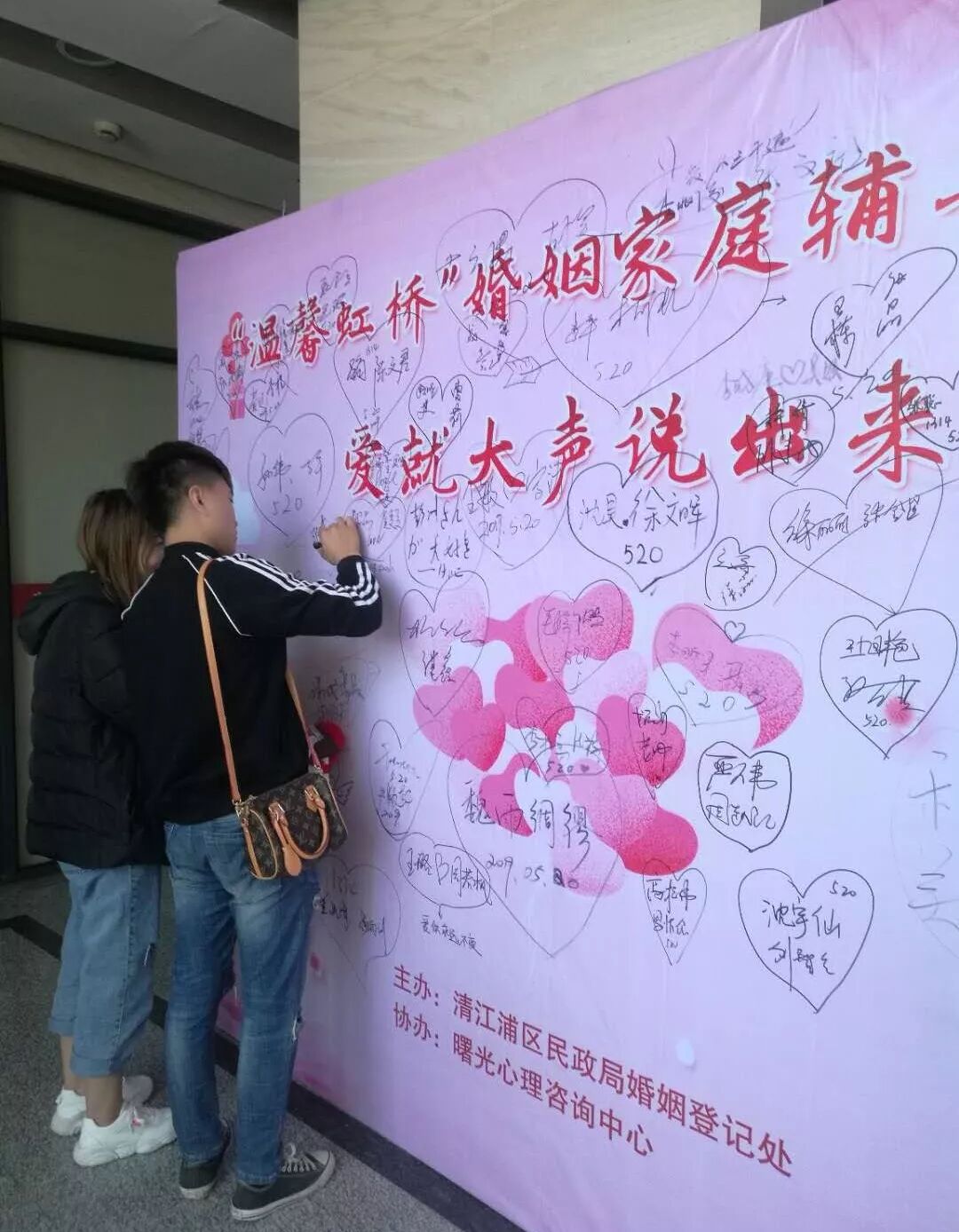 有人甜蜜领证,也有人黯然分手。据统计,5月20日当天,清江浦区民政局婚姻登记处共办理结婚登记312对(其中1对涉外婚姻登记),补领结婚证4对,离婚登记6对。骆秀主任说,他们正努力把“预防”工作做到婚前,“过去,我们只有离婚疏导,但这种‘救火’的方式作用有限。现在,我们通过政府购买服务方式,由曙光心理咨询中心的婚姻家庭咨询师、心理咨询师和律师等组成专业团队从事婚姻家庭辅导,从婚前、婚中、婚后全方位服务群众。”骆主任介绍,截至目前,清江浦区民政局已为7206人次提供一对一的婚前咨询辅导;为新婚夫妇开展婚前辅导讲座48场;婚姻危机干预服务3160次,成功劝和率达32%以上;还为49对离异人士进行疏解情绪和调试心理辅导,重建他们生活的信心。除此之外,清江浦区民政局先后开通了淮安市首条情感咨询免费热线、婚姻家庭情感微信公众号,让市民足不出户便可享受到婚姻家庭辅导服务。自2019年2月开始,还增设了面对涉外、港澳台居民婚姻家庭辅导服务。目前已为12对涉外、港澳台居民提供婚姻家庭辅导。