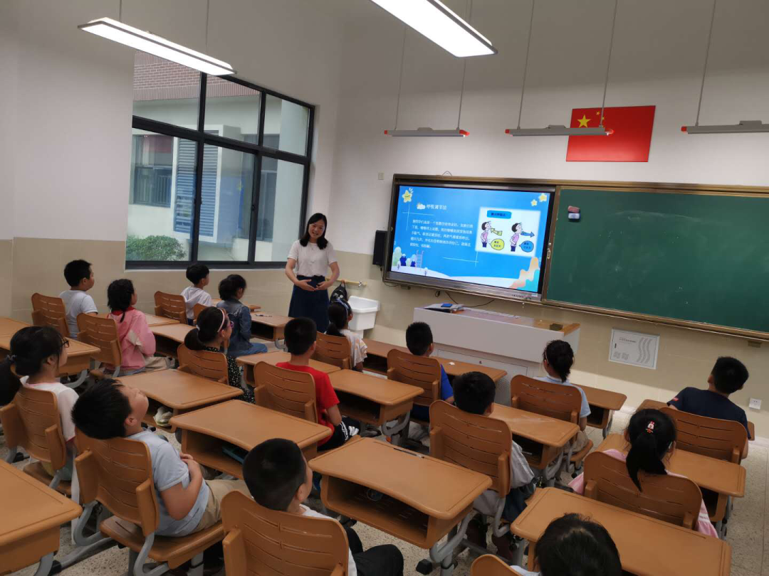 王老师向孩子们介绍了情绪分为“积极情绪”和“消极情绪”两大类,并向孩子们介绍了这两类情绪分别会对人体带来什么样的作用,介绍释放“消极情绪”的一些方法,带孩子们体验“腹式呼吸”放松身心。